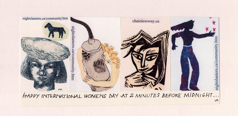 A note on Night's Lantern: focused on the prevention of genocide, nightslantern.ca was first posted in 2001 and has now grown to several thousand pages, including many of my essays and a few essays by other writers. Work not by me is specifically attributed and published with the author's permission (Permission for the UN's Convention on Genocide was first obtained in 1989 for our print publication of the Convention when it fell out of print at the UN). The years of "suppressed news" pages and political prisoner pages often rely for information on multiple news sources which I've made some effort to credit for verification of facts and to counter "fake news". The work of doing all this rises from what both my partner Julie Maas and I have considered necessity, finding through our publication of the UN Texts with our kitchen table press in Maine and then the Gulf War and destruction of Iraq, a risk of genocide to any country where the damage would benefit U.S. and international corporate interests. Increasingly the protections against this were being removed. I remember in 1990 sending complementary copies of UN Texts: The Crime of Genocide & Bill of Human Rights to most members of the U.S. Congress, at a time when the issue of genocide was a non-issue to the media, despite U.S. ratification of the Convention treaty in 1988. Our small press usually published my writings and Julie Maas's artwork. With exception the publication of UN Texts was badly received and in 1995 we continued publishing by moving to Canada. The internet was taking hold; a friend taught me to write .html code. These years of following genocide related news and trying to counter tragedies and the horror done individuals and entire groups, without compromising what I and we consider objective truth is an almost hopeless task, without payment, without overt effect other than the puzzling back and forth of web traffic statistics and "visits" from many countries. The only thing which has kept us going is where we started, our own artforms, which sustain us, and which is why drawings appear irregularly and my poems, simply as alleviation from reporting and realizations of what is too painful to understand or humanity would have been able to stop the extremes of suffering. I include here one of my poems, which may help explain this endeavor: