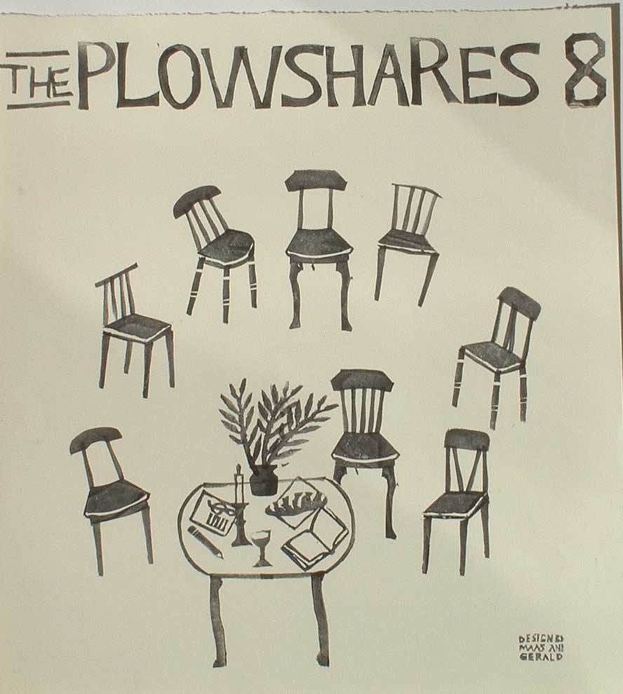 Background. Plowshares actions are part of a continuing Plowshares movement which started at the King of Prussia General Electric plant in Pennsylvania (a defense contractor for nuclear weapons) 1980, when eight activists poured their blood, spray painted, accomplished minor damage to government property. This briefly shut down the plant's production. The original eight were Phil Berrigan, Fr. Daniel Berrigan 1 and 2, Molly Rush, John Schuchardt, Dean Hammer, Fr. Karl Kabat, Elmer Maas, and Sr. Anne Montgomery (many of these are no longer with us). The judge refused the Nuremberg defense. The group rejected plea bargaining - and the Berrigans were sentenced to from 3 to 10 years - the sentences varied and were subsequently found unjust. Elmer served 18 months. He was in several subsequent Plowshares actions and part of the Plowshares communities but as Julie's uncle and our friend he was also part of our family until his death in 2005.