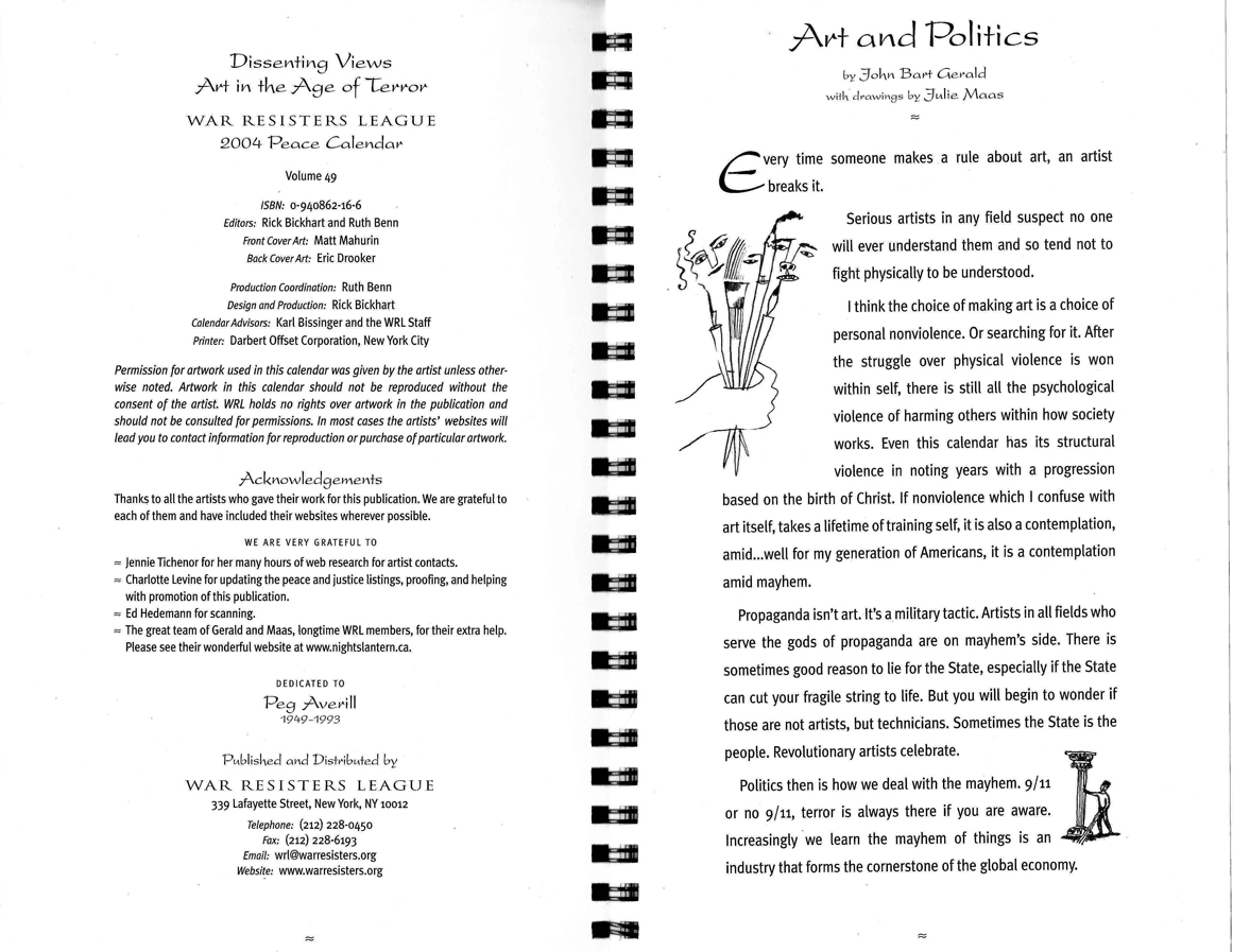 published with Julie's drawings in the War Resisters League 2004 Peace Calendar: